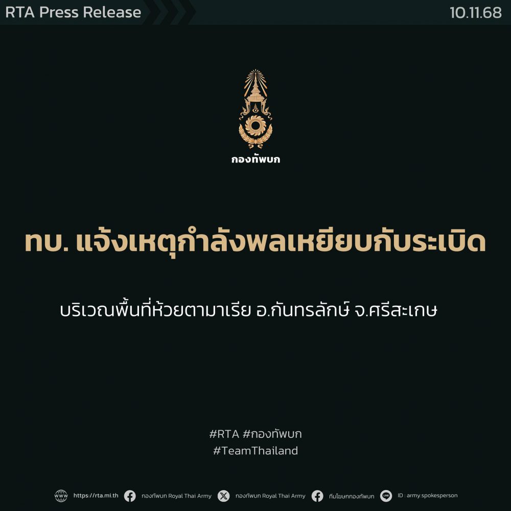 กองทัพบกแจ้งเหตุกำลังพลเห…