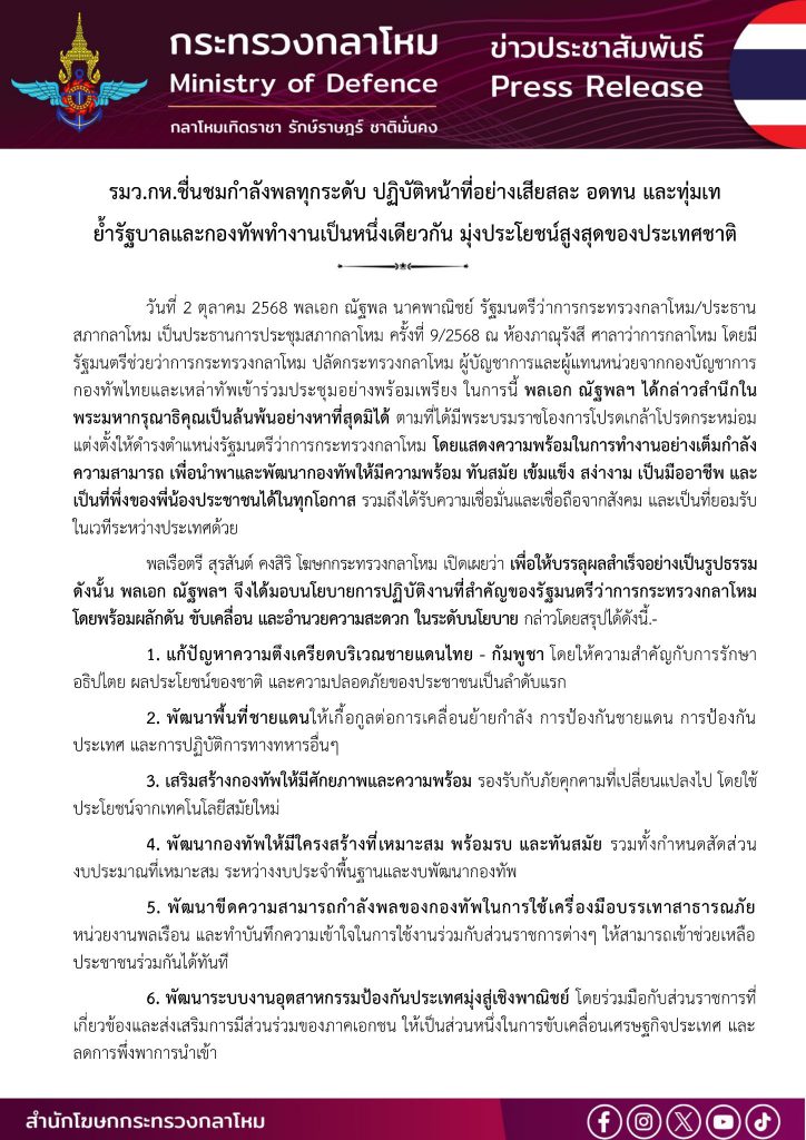#กระทรวงกลาโหม #สำนักงานปลัดกระทรวงกลาโหม #กองทัพไทย #กองบัญชาการกองทัพไทย #กองทัพบก #กองทัพเรือ #กองทัพอากาศ