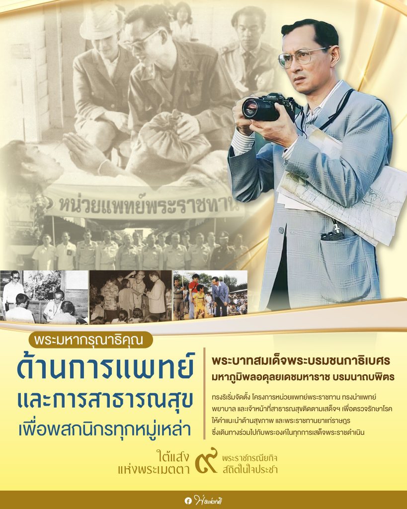 พระมหากรุณาธิคุณเหล่านี้ ไม่เพียงแต่ทำให้ประชาชนหายจากโรคภัย แต่ยังเป็นการฟื้นฟู “สุขภาวะ” ของสังคมไทยอย่างแท้จริง ทั้งด้านร่างกาย จิตใจ และความมั่นคงในชีวิต เพื่อการมีชีวิตที่ดีขึ้นอย่างทั่วถึงและยั่งยืน