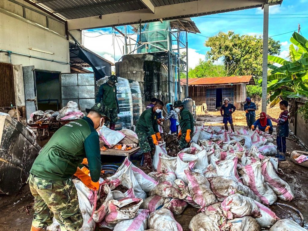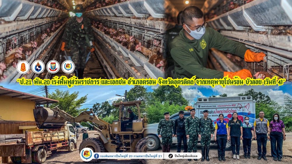 เมื่อ 5 ต.ค. 68 ศบภ.มทบ.35 โดย ป.21 พัน.20 พร้อมด้วยกำลังพลจิตอาสาพระราชทานและยุทโธปกรณ์ของหน่วย ร่วมกับส่วนราชการ อ.ตรอน จว.อ.ต. ลงพื้นที่เร่งฟื้นฟูให้การช่วยเหลือเกษตรกรฟาร์มไก่ไข่ ต.น้ำอ่าง อ.ตรอน จว.อ.ต. ผู้ประสบอุทกภัยน้ำท่วม ซึ่งเป็นผู้ได้รับความเสียหาย โดยทางหน่วย ได้ให้ความช่วยเหลือในการเก็บกู้ซากสัตว์ปีกที่จมน้ำเพื่อป้องกันโรคระบาด กลิ่น มลภาวะ และประสานรถฉีดพ่นน้ำยาฆ่าเชื้อโรคจากกองสารวัตรและกักกัน กรมปศุสัตว์ (ด่านกักกันสัตว์อุตรดิตถ์) เพื่อทำการฉีดพ่นในพื้นที่ดังกล่าว โดยมี นางสาว พรทิพย์ คล้ายชม นอ.ตรอน ร่วมลงพื้นที่ให้กำลังใจและมอบของอุปโภคบริโภคให้แก่กำลังพลของหน่วย และหน่วยยังได้เตรียมกำลังพล ยุทโธปกรณ์ และอุปกรณ์ต่างๆ เพื่อให้ความช่วยเหลือประชาชนอย่างเต็มที่
