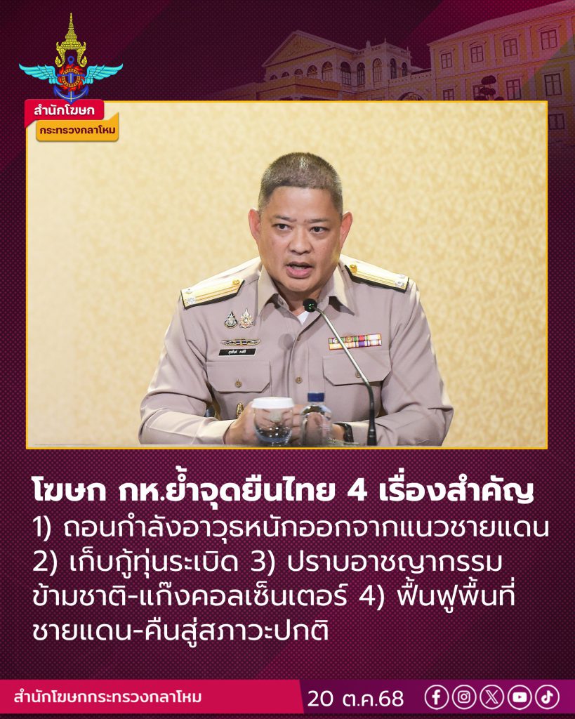 ประเด็นเหล่านี้ จะถูกนำเข้าสู่การหารือในที่ประชุม GBC ในวันที่ 23 ตุลาคมนี้ ที่กรุงกัวลาลัมเปอร์ ร่วมกับการกำหนดกรอบเวลาการทำงานร่วมกันที่ชัดเจนมากยิ่งขึ้น ไม่ว่าจะเป็น การเร่งรัดแผนเก็บกู้ทุ่นระเบิด โดยระบุพื้นที่และระยะเวลาดำเนินการอย่างชัดเจน การวางแผนปฏิบัติการร่วมปราบปรามแก๊งคอลเซ็นเตอร์อย่างเป็นระบบ