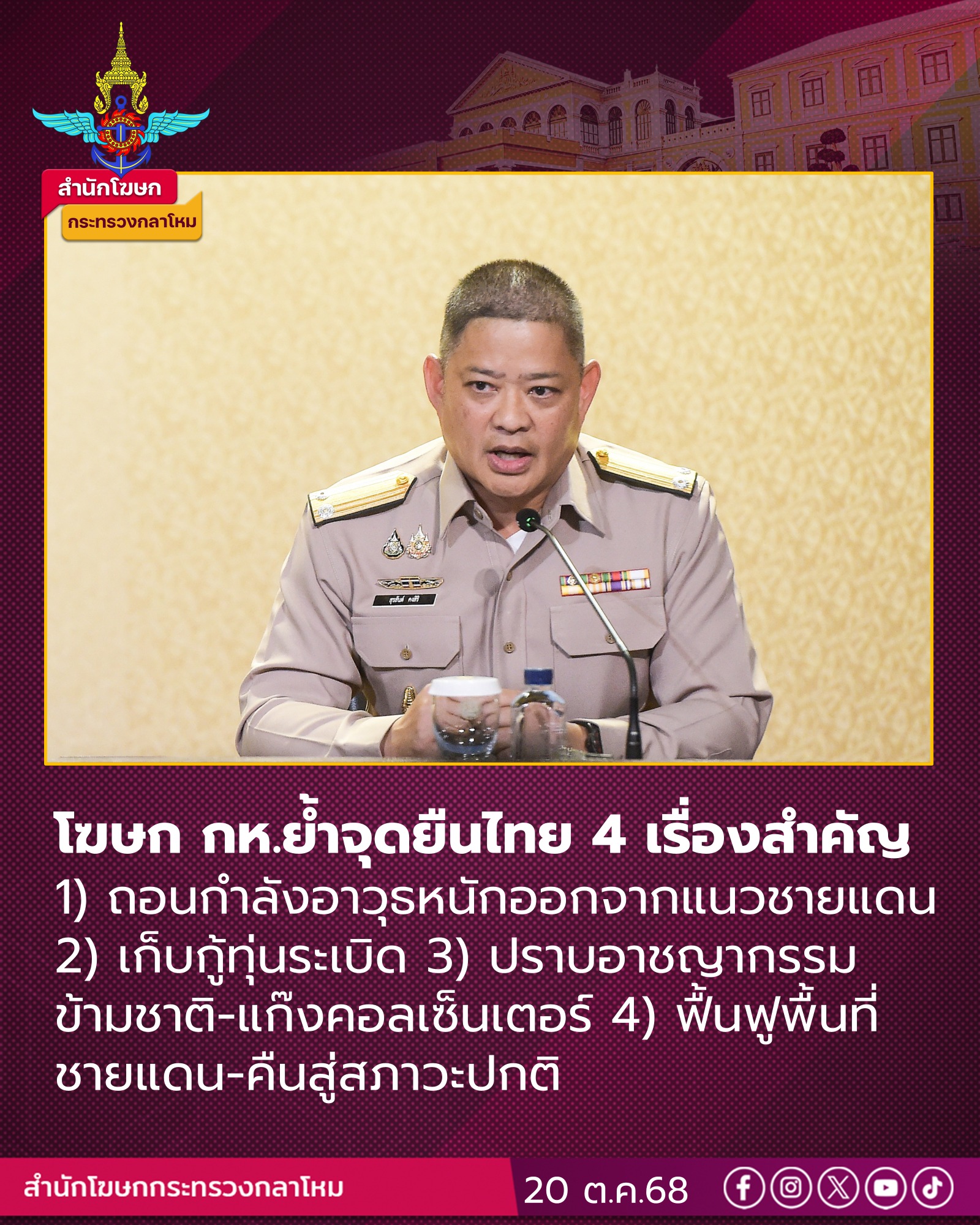โดยจะมีประเทศมาเลเซียและสหรัฐอเมริกาเข้าร่วมเป็นผู้สังเกตการณ์ ซึ่งการประชุม GBC ครั้งนี้ จะพิสูจน์ให้เห็นว่ากัมพูชามีความจริงใจในการแก้ไขปัญหาร่วมกับไทยแค่ไหน และขอย้ำว่า การดำเนินการของฝ่ายไทยคำนึงถึงความปลอดภัยของพี่น้องประชาชนเป็นสำคัญ ทั้งจากความพยายามในการฟื้นฟูพื้นที่ชายแดน การถอนกำลังทางอาวุธ และการปราบปรามอาชญากรรมข้ามชาติ