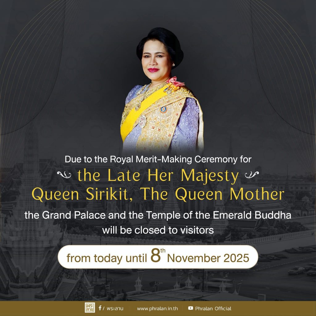 the Grand Palace and the Temple of the Emerald Buddha will be closed to visitors from today until 8th November 2025.