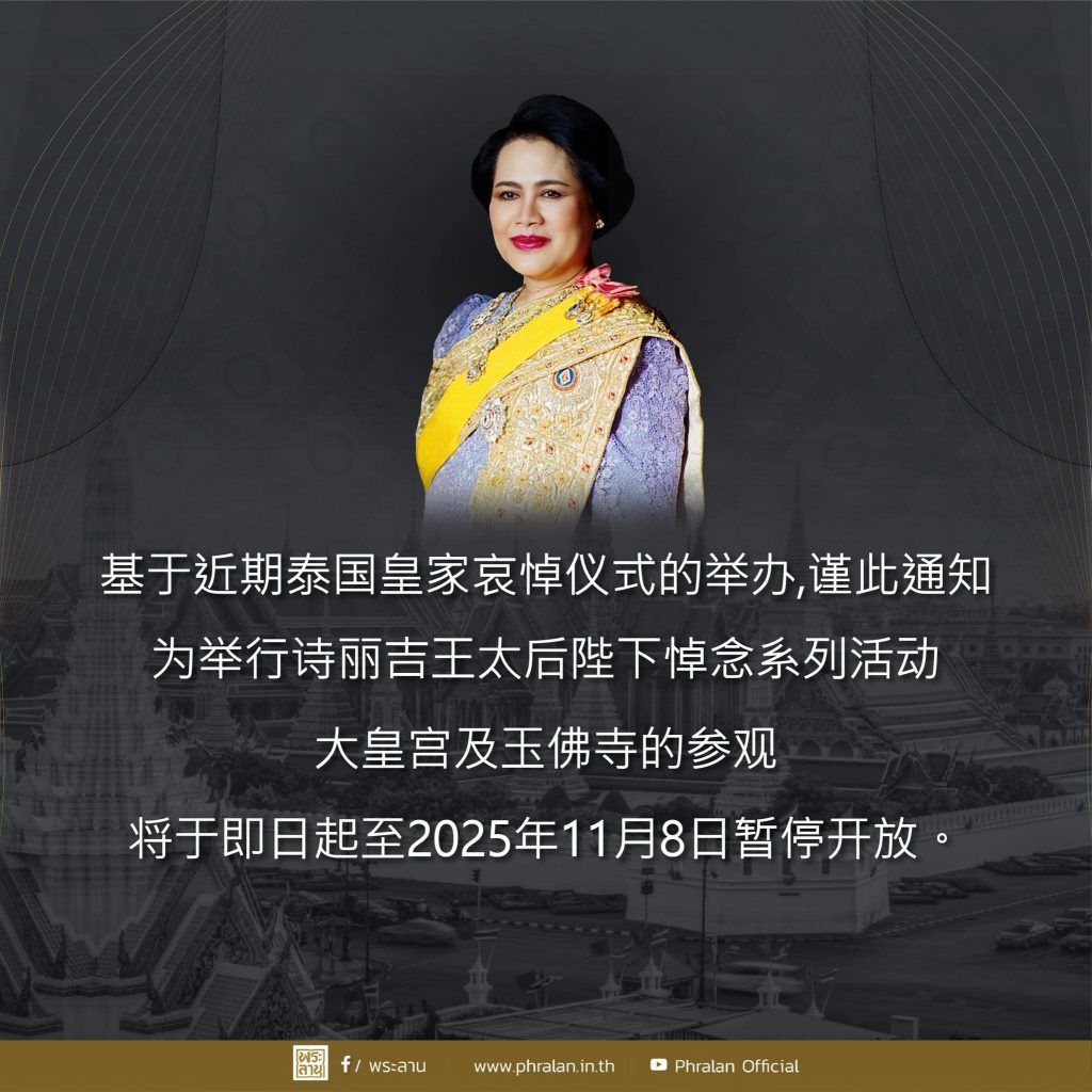 基于近期泰国皇家哀悼仪式的举办,谨此通知