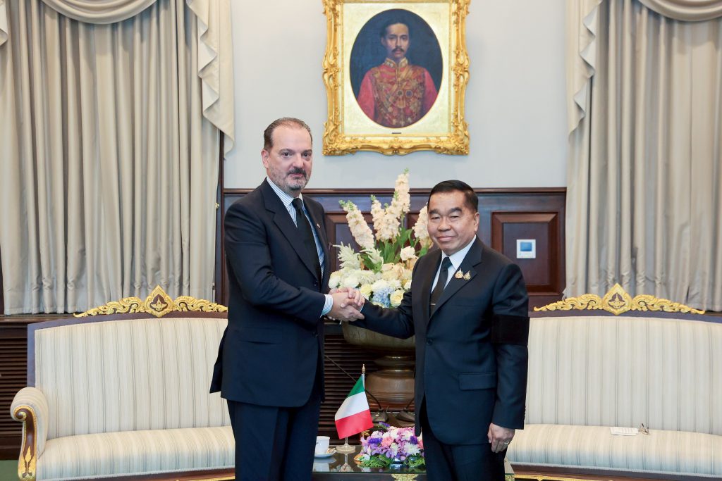 รัฐมนตรีว่าการกระทรวงกลาโหมได้กล่าวต้อนรับและแสดงความยินดีต่อการเข้าพบ โดยย้ำว่า ไทยและอิตาลีมีความสัมพันธ์อันดีที่ยาวนานกว่า 157 ปี ทั้งในด้านการเมือง เศรษฐกิจ วัฒนธรรม และความมั่นคง พร้อมขอบคุณกระทรวงกลาโหมอิตาลีที่ให้การสนับสนุนหลักสูตรการศึกษาและหลักสูตรทางเทคนิคแก่กองทัพไทย ตลอดจนให้ความร่วมมือในโครงการจัดหายุทโธปกรณ์