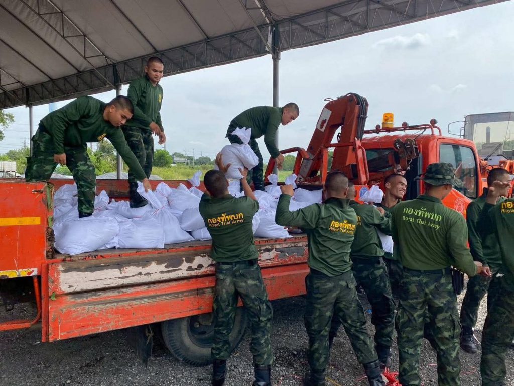 -จังหวัดปทุมธานี : หน่วยบัญชาการป้องกันภัยทางอากาศกองทัพบก จัดกำลังพลหน่วยขึ้นตรง เข้าช่วยบรรจุทรายใส่กระสอบ จัดทำแนวกั้นน้ำ และสนับสนุนยานพาหนะในการอพยพประชาชน รวมถึงขนย้ายสิ่งของจำเป็นในพื้นที่อำเภอเมืองปทุมธานี สามโคก และลาดหลุมแก้ว
