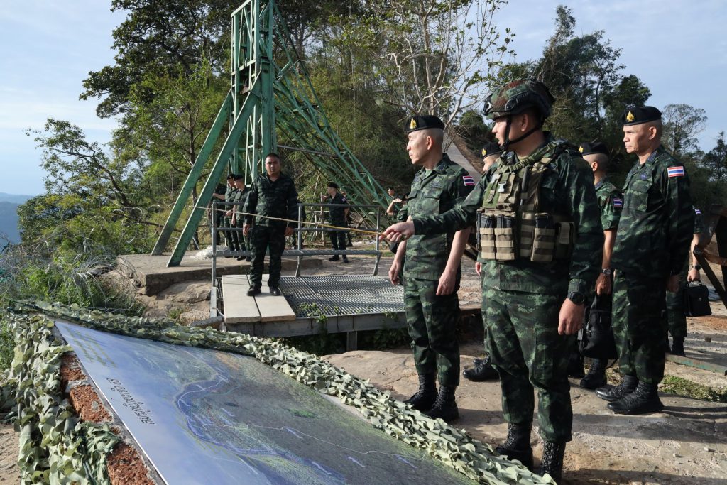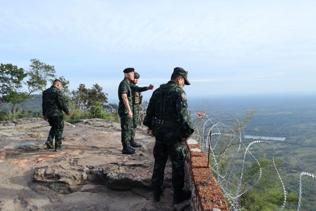 จากนั้น ปลัดกระทรวงกลาโหม เดินทางไปตรวจภูมิประเทศ ณ ฐานปฏิบัติการสามแยก (ฉก.๒) อำเภอพนมดงรัก จังหวัดสุรินทร์ และฐานปฏิบัติการอินทุมาน อำเภอกันทรลักษ์ จังหวัดศรีสะเกษ
