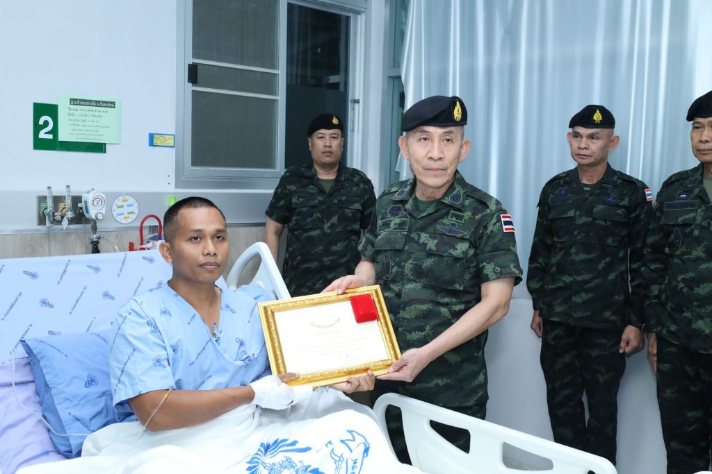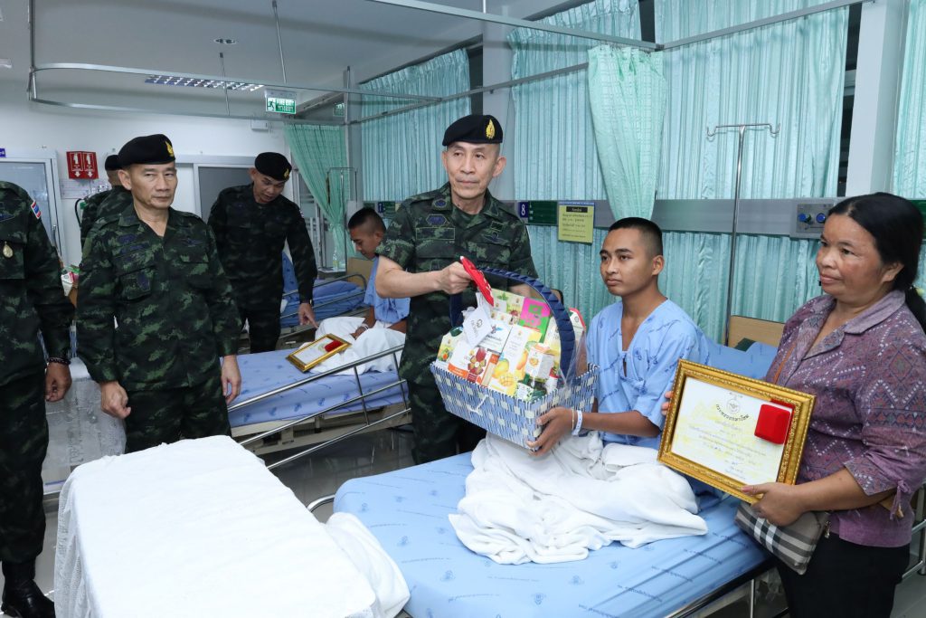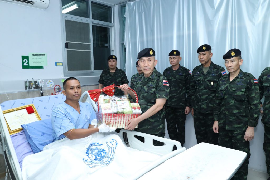 นอกจากนี้ยังได้เดินทางไปเยี่ยมและให้กำลังใจทหารที่ได้รับบาดเจ็บจากเหตุการณ์เหยียบกับระเบิด ณ โรงพยาบาลค่ายสรรพสิทธิประสงค์ จังหวัดอุบลราชธานี เพื่อให้กำลังใจแก่กำลังพลที่ปฏิบัติหน้าที่ด้วยความกล้าหาญ พร้อมรับฟังอาการบาดเจ็บและการดูแลรักษาจากทีมแพทย์อย่างละเอียด