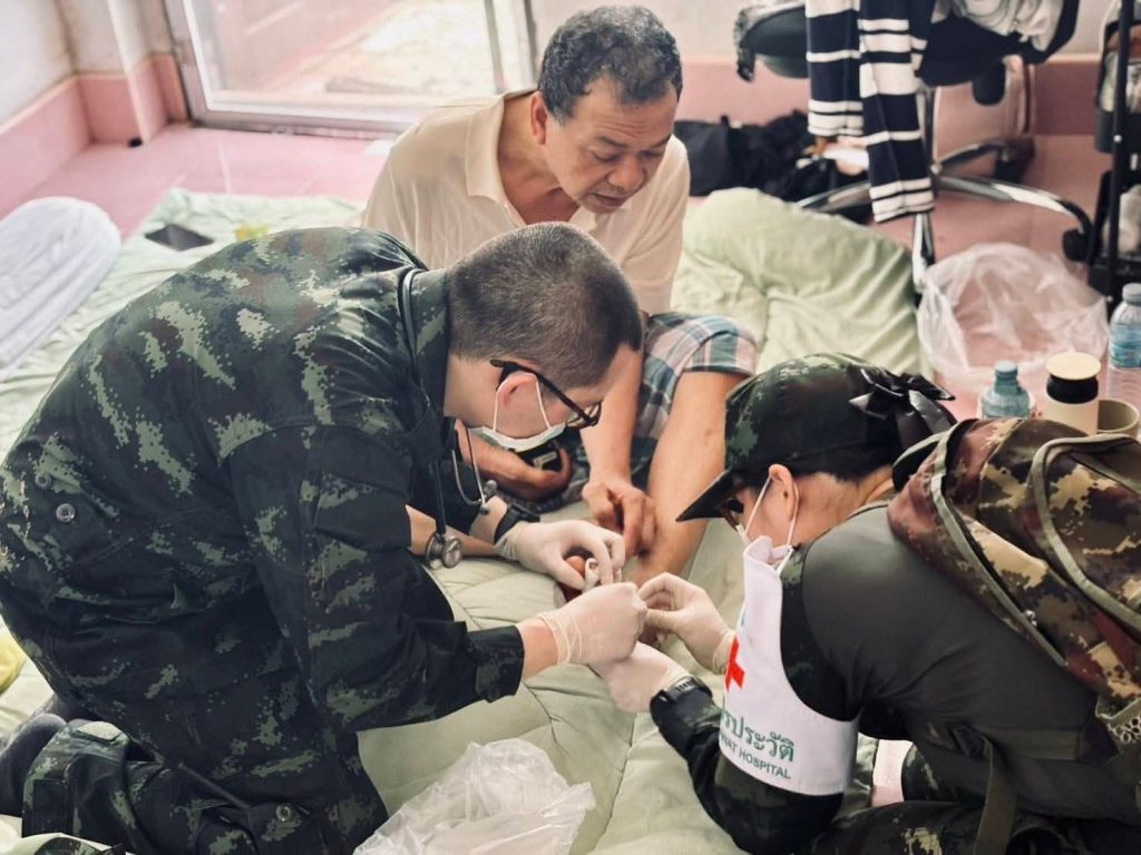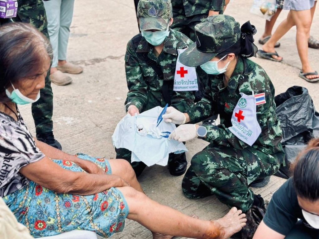 นอกจากนี้ ยังมีการคัดกรองภาวะเครียดหลังเหตุการณ์รุนแรง (PTSD) และติดตามสุขภาพจิตประชาชนอย่างต่อเนื่อง เพื่อให้ได้รับการดูแลครบวงจรทั้งด้านร่างกายและจิตใจควบคู่กันไป พร้อมแจกจ่ายยารักษาเบื้องต้น รวมถึงสิ่งของอุปโภคบริโภค เพื่อบรรเทาความเดือดร้อนให้กับประชาชนในพื้นที่อย่างทั่วถึง