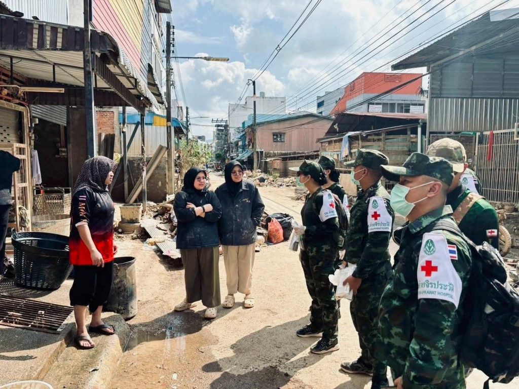 นอกจากนี้ ยังได้จัดกำลังชุดแพทย์ทหารเดินเท้าออกให้บริการตรวจรักษาแก่ประชาชนในพื้นที่อย่างใกล้ชิด ครอบคลุมทั้งโรคผิวหนัง น้ำกัดเท้า โรคติดเชื้อที่พบบ่อยหลังน้ำท่วม โรคฉี่หนู และปัญหาระบบทางเดินหายใจ พร้อมทั้งให้บริการทำแผล ดูแลผู้ป่วยเรื้อรังที่ขาดยาต่อเนื่อง และให้คำแนะนำด้านสุขอนามัยหลังน้ำท่วมเพื่อป้องกันการเกิดโรคระบาดในชุมชน