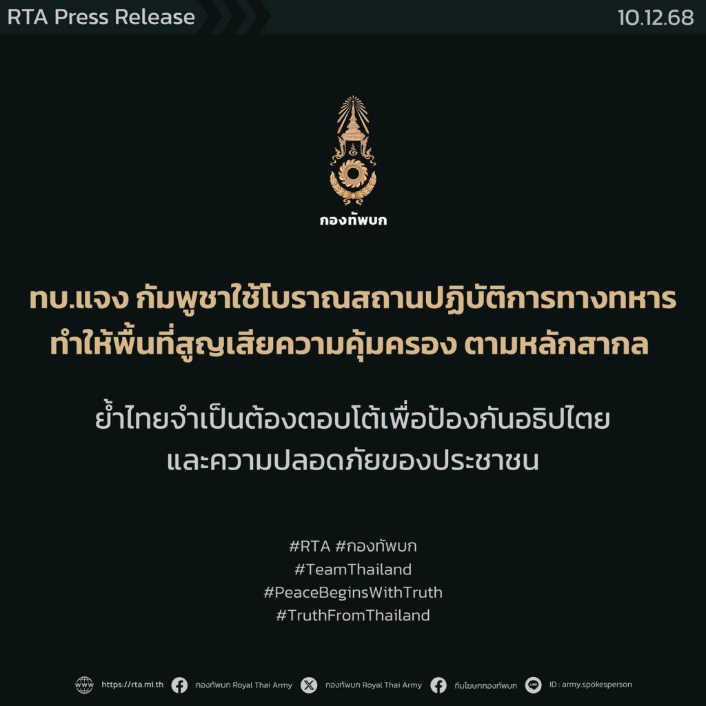 ศูนย์ประชาสัมพันธ์กองทัพบก โดยทีมโฆษกกองทัพบก, 10 ธันวาคม 2568