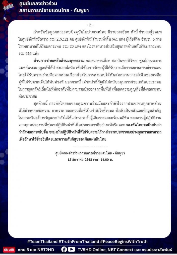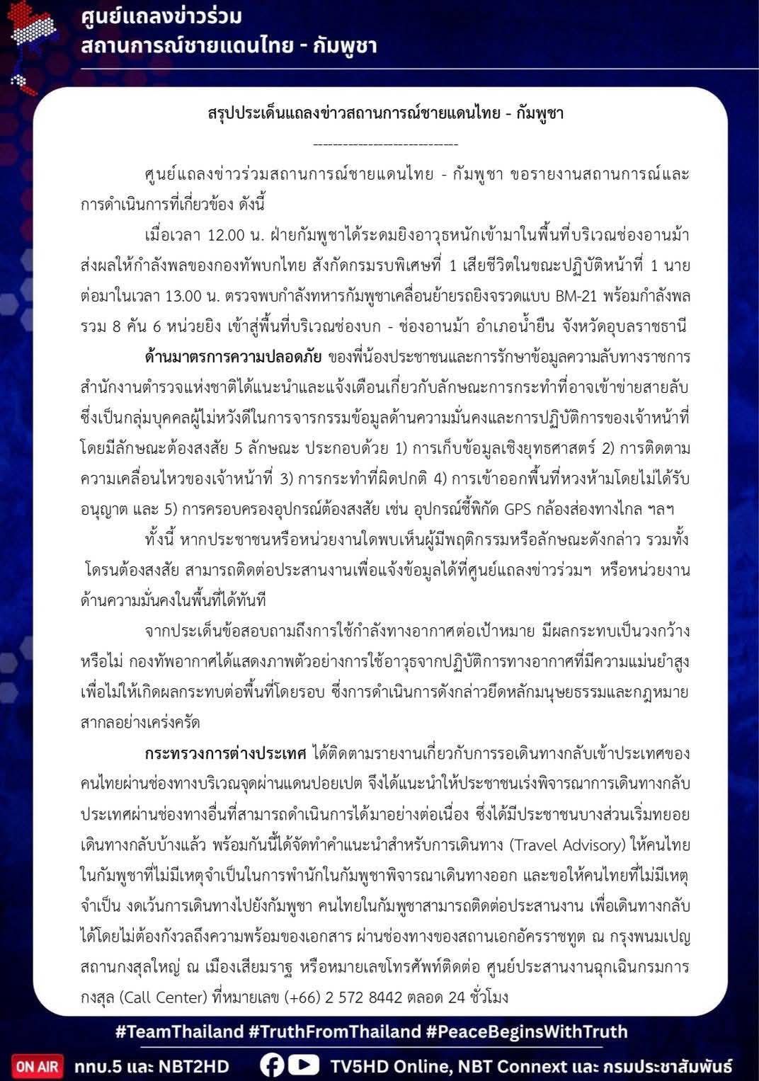 สรุปประเด็นแถลงข่าวสถานการณ์ชายแดนไทย-กัมพูชา