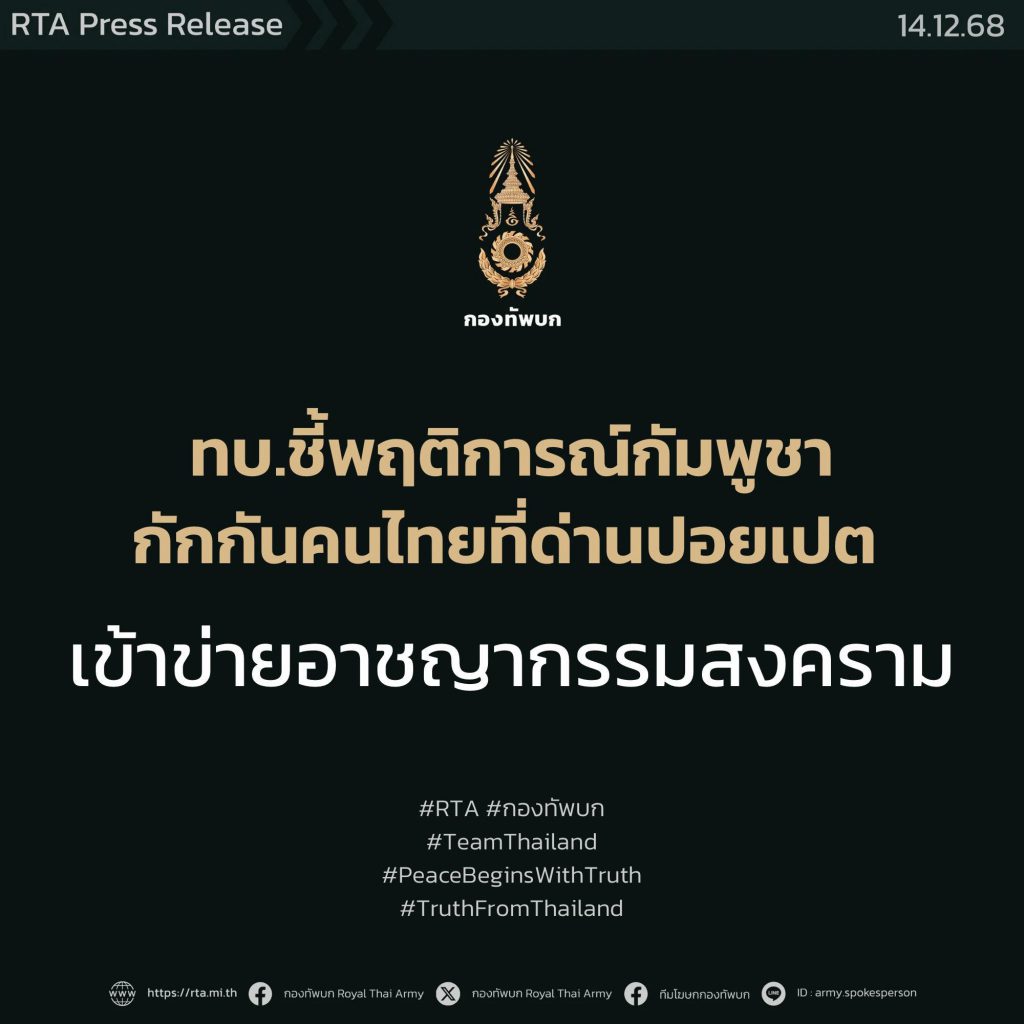จากกรณีที่ฝ่ายกัมพูชาแสดงพฤติการณ์อย่างชัดเจนในการขัดขวางการเดินทางกลับประเทศไทยของประชาชนชาวไทยจำนวนหลายพันคน ณ ด่านปอยเปตนั้น