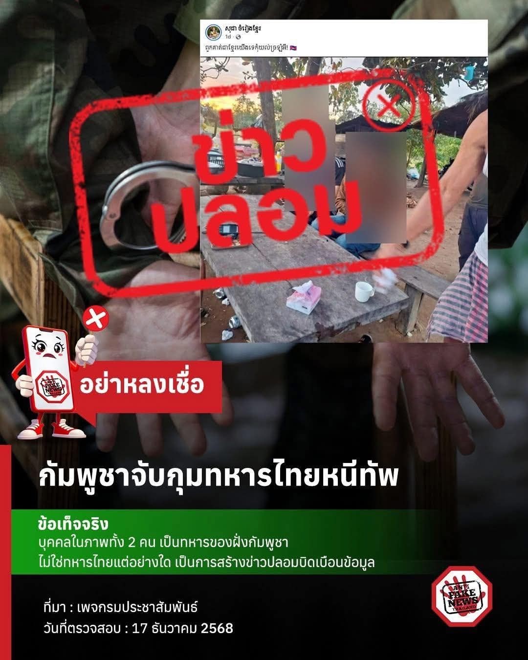 18 ธ.ค. 00 18 ธันวาคม 2025หลักเมืองออนไลน์หลักเมืองสัมพันธ์, อื่นๆ Fake News อย่าหลงเชื่อ!! ข่าวปลอมที่ปรากฎ ข้อมูลดังกล่าวเป็นข้อมูลเท็จไม่เป็นความจริง