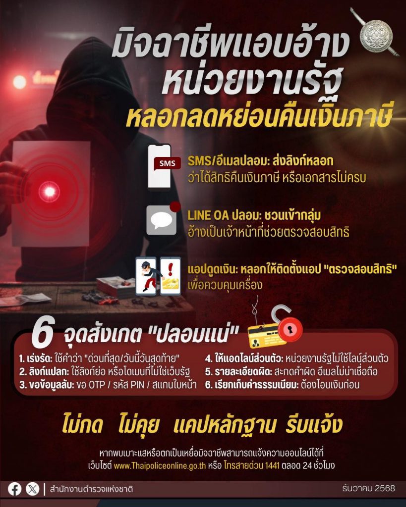 อย่าเชื่อ!! มุกแอบอ้างหน่วยงานรัฐหลอกลดหย่อนภาษี ล้วงข้อมูล ลวงโอนเงิน ที่มาในรูปแบบ SMS ปลอม ไลน์ปลอม แอปควบคุมโทรศัพท์มือถือ