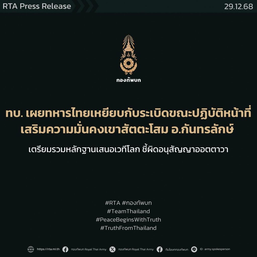 ศูนย์ประชาสัมพันธ์กองทัพบก โดยทีมโฆษกกองทัพบก, 29 ธันวาคม 2568