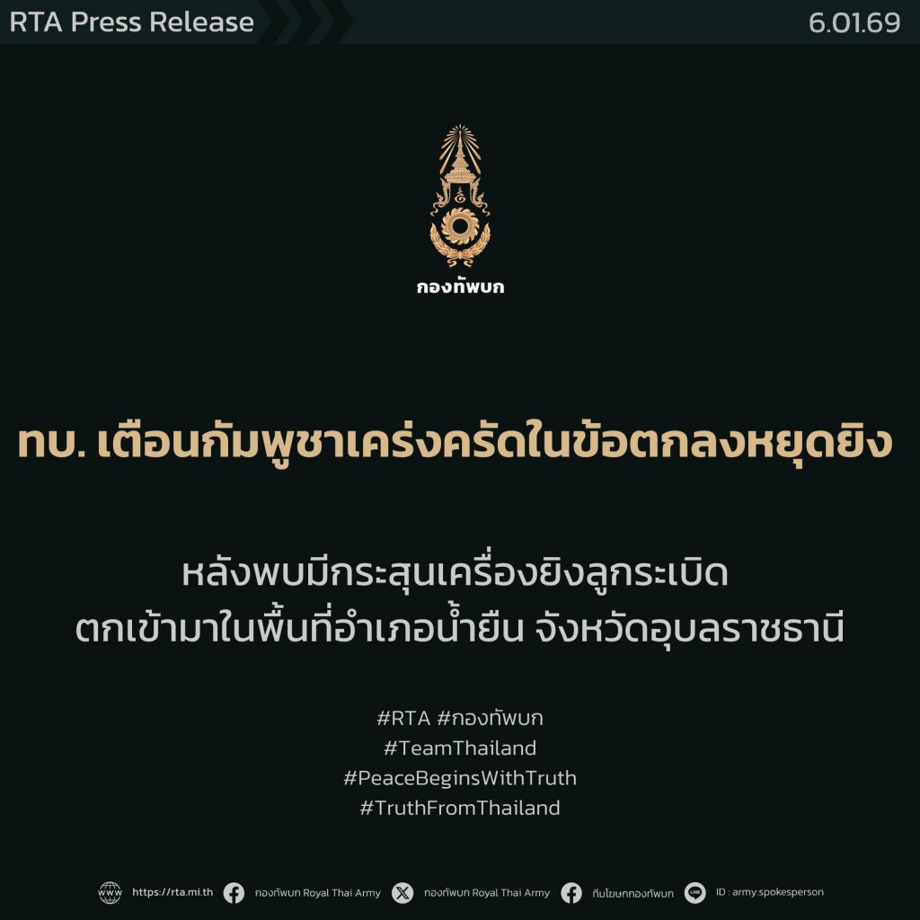 ศูนย์ประชาสัมพันธ์กองทัพบก โดยทีมโฆษกกองทัพบก, 6 มกราคม 2569