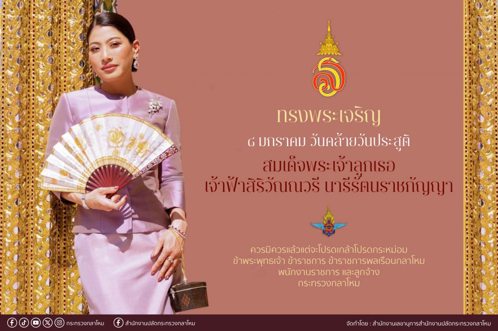ขอเชิญชวนประชาชนร่วมลงนามถวายพระพร สมเด็จพระเจ้าลูกเธอ เจ้าฟ้าสิริวัณณวรี นารีรัตนราชกัญญา เนื่องในโอกาสวันคล้ายวันประสูติ วันที่ ๘ มกราคม ๒๕๖๙ ผ่านระบบออนไลน์ ที่เว็บไซต์หน่วยราชการในพระองค์ https://wellwishes.royaloffice.th/home/index/50 ระหว่างวันที่ ๗ – ๙ มกราคม ๒๕๖๙