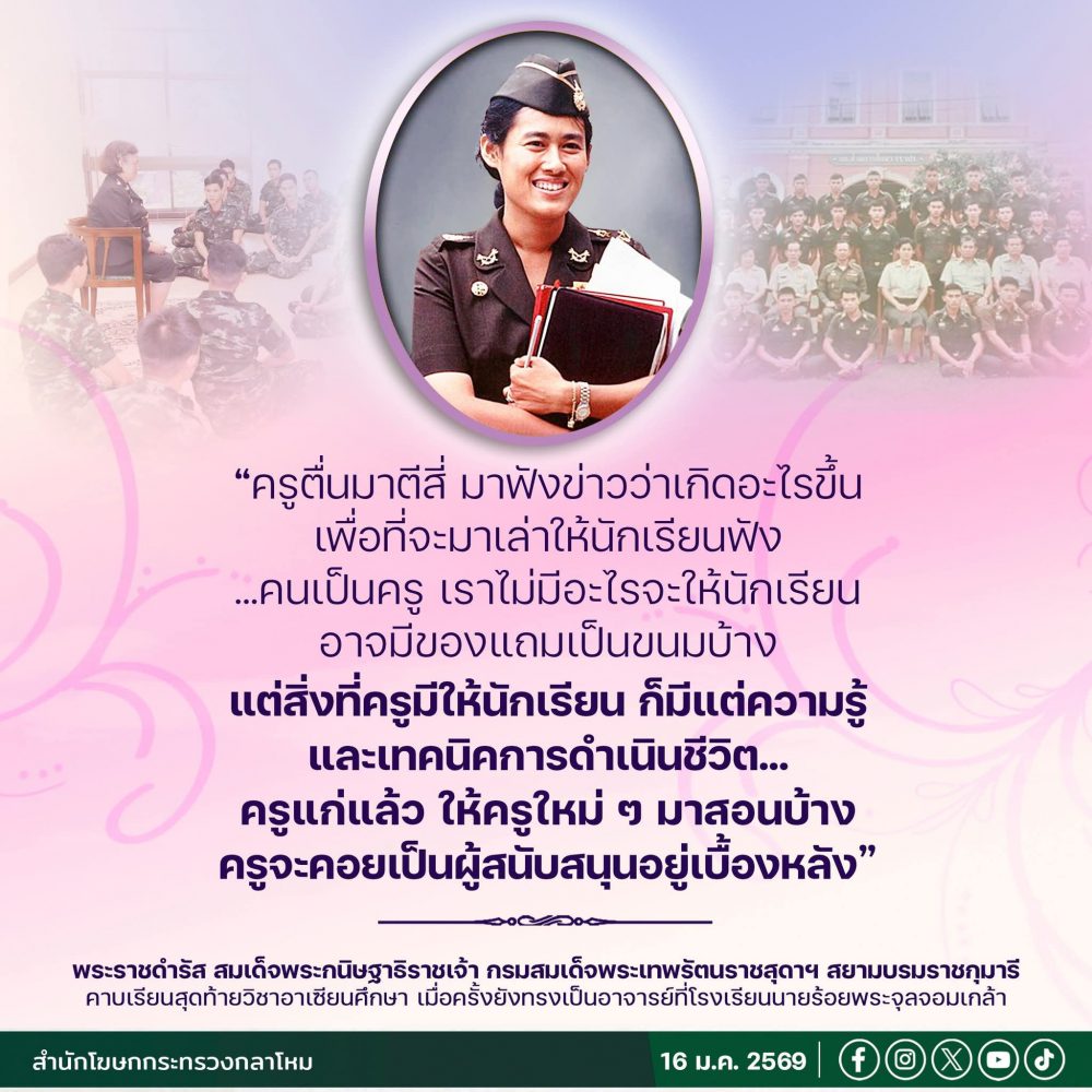 สมเด็จพระกนิษฐาธิราชเจ้า กรมสมเด็จพระเทพรัตนราชสุดาฯ สยามบรมราชกุมารี พระองค์ทรงเคยทรงงานเป็นพระอาจารย์สอนให้กับนักเรียนโรงเรียนนายร้อยพระจุลจอมเกล้า อยู่เป็นระยะเวลายาวนานถึง 35 ปี เมื่อวันที่ 2 ต.ค. 2558