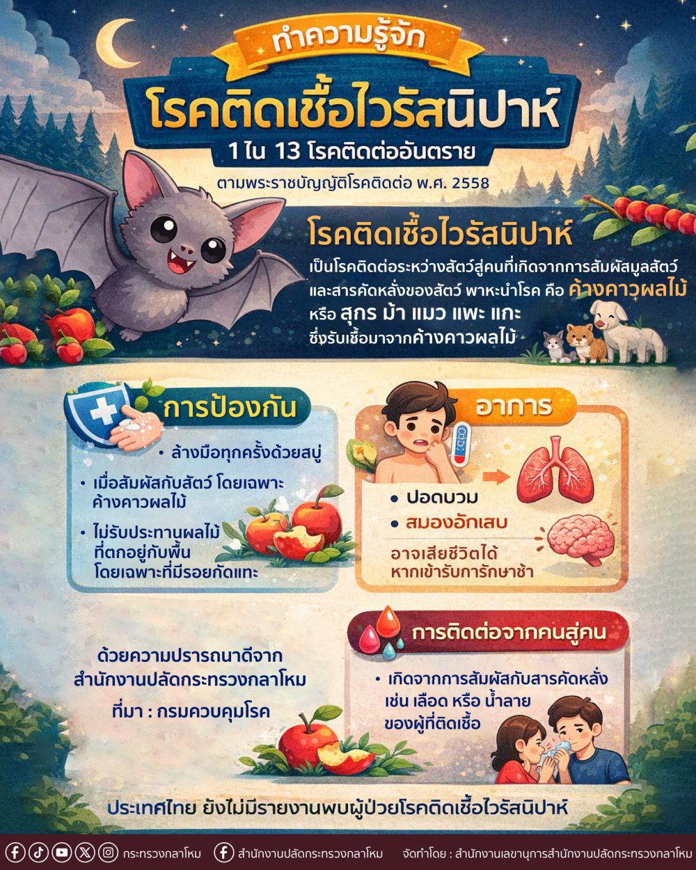 27 ม.ค. 00 ทำความรู้จัก โรคติดเชื้อไวรัสนิปาห์ 🦇🍎 1 ใน 13 โรคติดต่ออันตราย 🦠🚨 27 มกราคม 2026หลักเมืองออนไลน์หลักเมืองสัมพันธ์