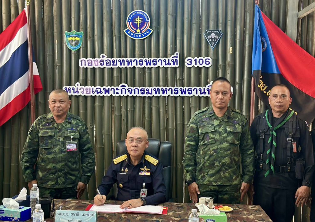 พลอากาศเอก สุชาติ เทพรักษ์ รองปลัดกระทรวงกลาโหม (๓) นำคณะตรวจเยี่ยมตามแผนงานป้องกันและแก้ไขปัญหายาเสพติดของ สำนักงานปลัดกระทรวงกลาโหม ประจำปี ๒๕๖๙ ณ ฐานปฏิบัติการด่านตรวจกิ่วสะไต อำเภอแม่จัน จังหวัดเชียงราย โดยมี พลตรี สุชาติ พุ่มสุวรรณ ที่ปรึกษากองกำลังผาเมือง นำคณะให้การต้อนรับ