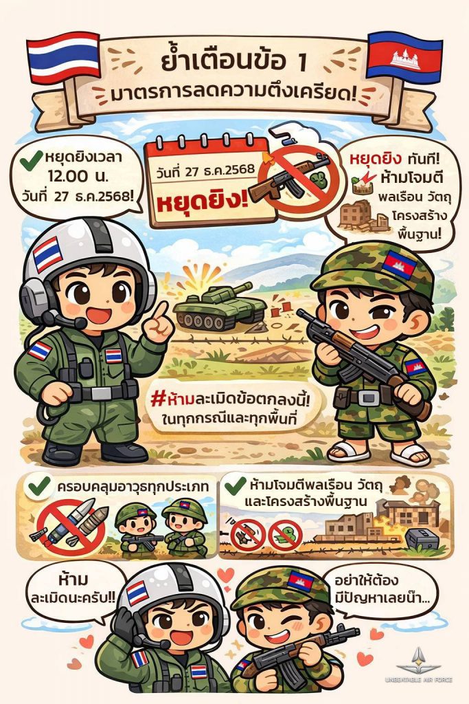 หยุดยิงเวลา วันที่ 27 ธ.ค.2568 ตั้งแต่เวลา 12.00 น.