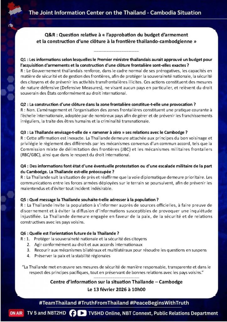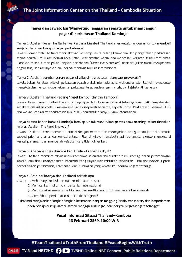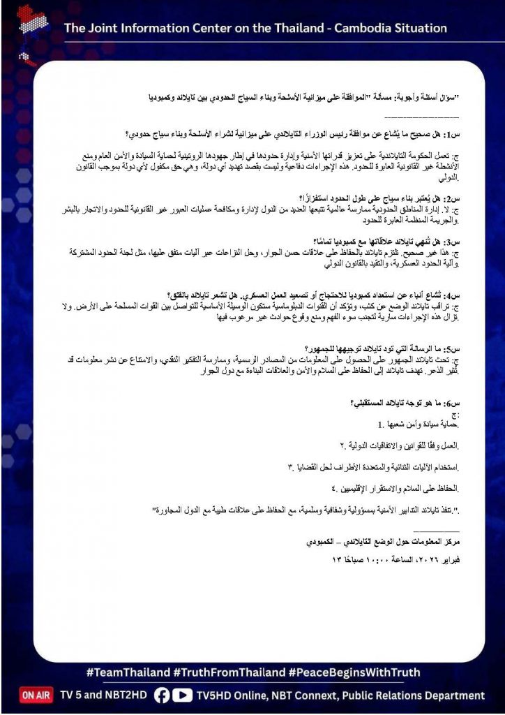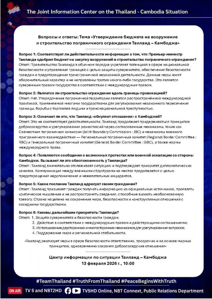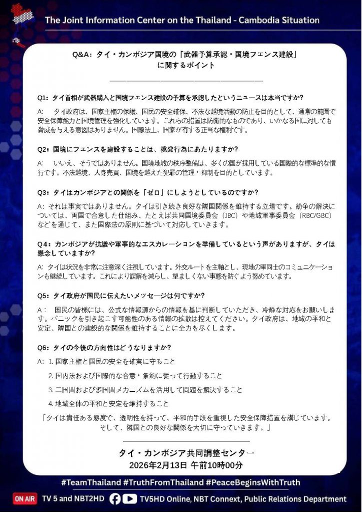 13 ก.พ. 00 Q&A : ประเด็น “อนุมัติงบอาวุธ – สร้างรั้วชายแดนไทย – กัมพูชา” 🇹🇭🇰🇭 13 กุมภาพันธ์ 2026หลักเมืองออนไลน์รักษ์ความสงบ