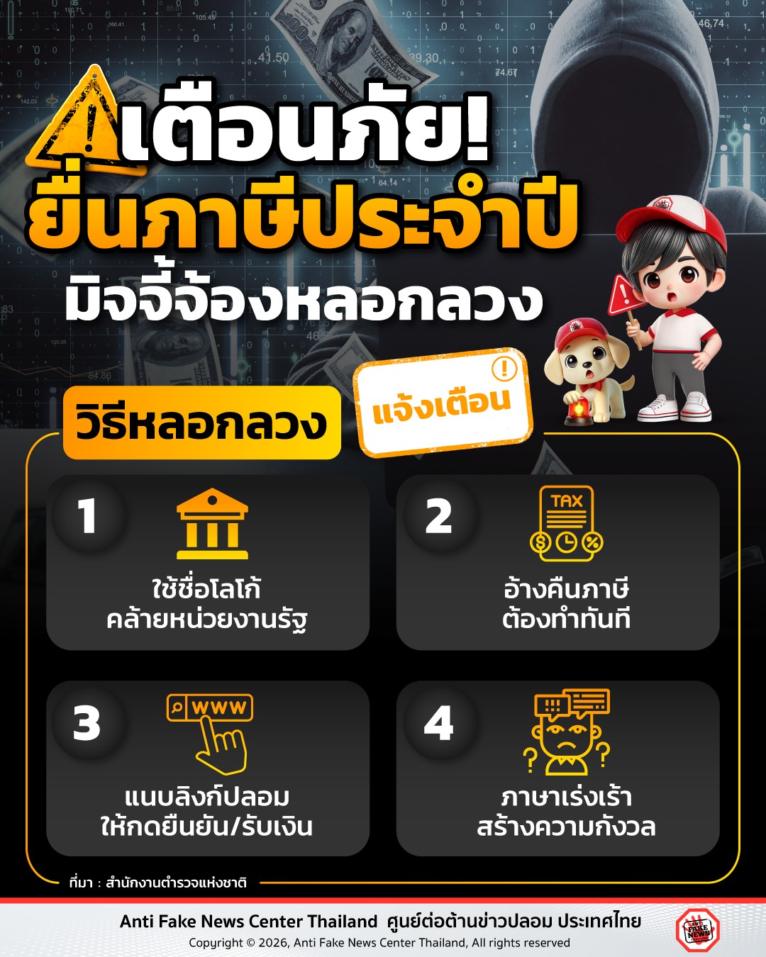 มิจฉาชีพฉวยโอกาส ขโมยข้อมูลส่วนตัวในช่วงฤดูกาลยื่นภาษีประจำปี เจอแบบนี้ต้องระวัง ไม่คลิกลิงก์ กรอกข้อมูล