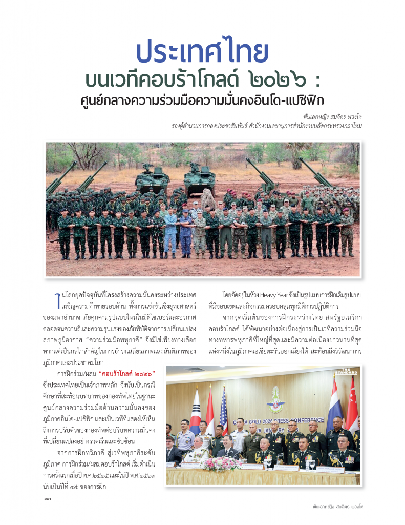 24 เม.ย. 00 ประเทศไทย บนเวทีคอบร้าโกลด์ ๒๐๒๖ : ศูนย์กลางความร่วมมือความมั่นคงอินโด-แปซิฟิก 24 เมษายน 2026หลักเมืองออนไลน์รักษ์มิตรประเทศ