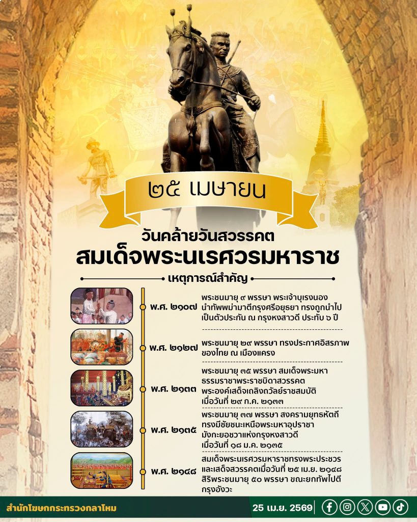 25 เม.ย. 00 25 เมษายน วันคล้ายวันสวรรคตสมเด็จพระนเรศวรมหาราช 25 เมษายน 2026หลักเมืองออนไลน์รักษ์กษัตริย์ 25 เมษายน วันคล้ายวันสวรรคตสมเด็จพระนเรศวรมหาราช